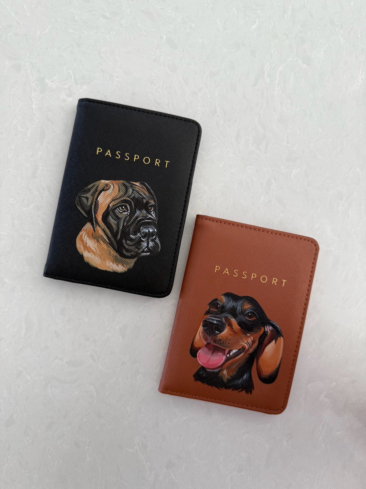 Keep your travel essentials stylishly secure with a custom hand-painted passport cover - because every adventure is better with your furry co-pilot by your side!